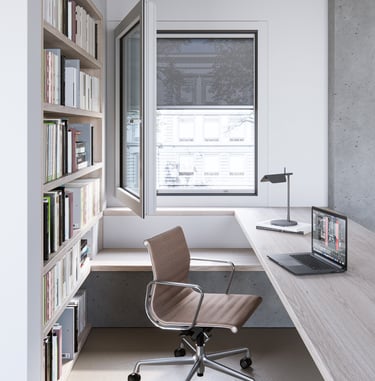 Helles Arbeiten ohne Blendung, Spiegelungen oder permanente Vorhänge.