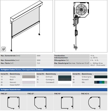 Das System ist für Bereiche gedacht, in denen keine hohen Windgeschwindigkeiten zu erwarten sind. Um den Textilscreen bei zu starken Böen vor Schäden zu schützen, wird ein Windsensor fest eingeplant.
